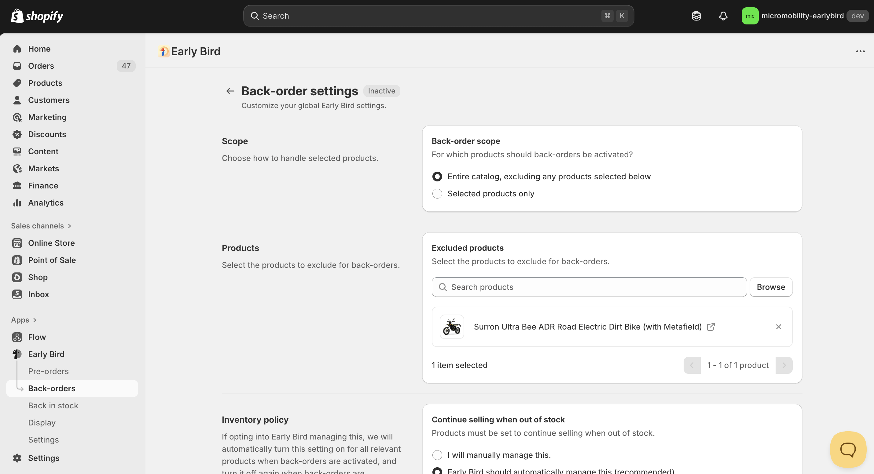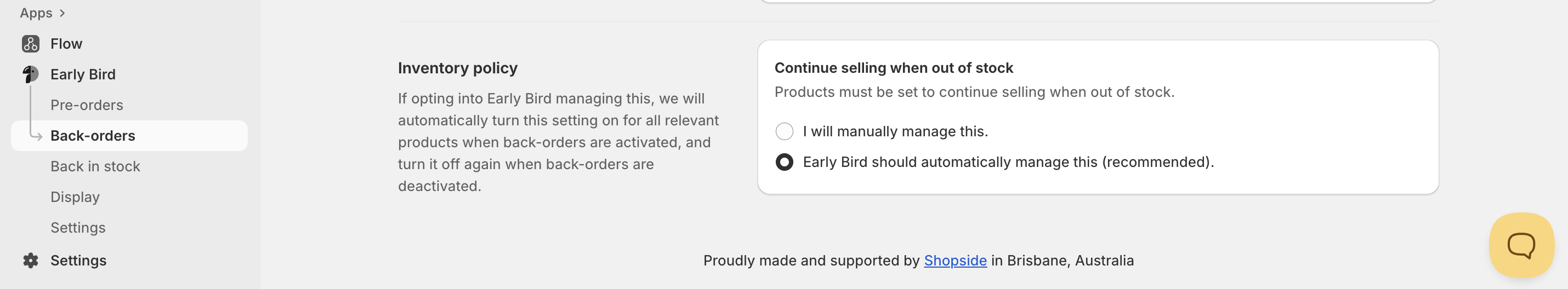 For detailed setup instructions, see our guide on Getting Started with Early Bird or our YouTube video on how to setup backorders.